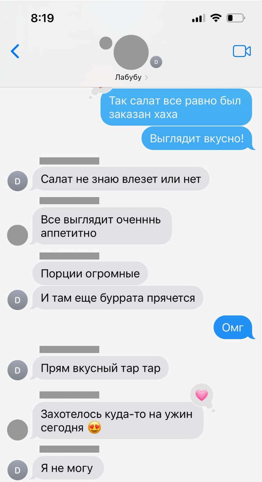 Tania's text messages in Russian